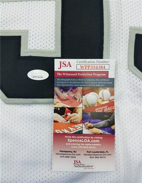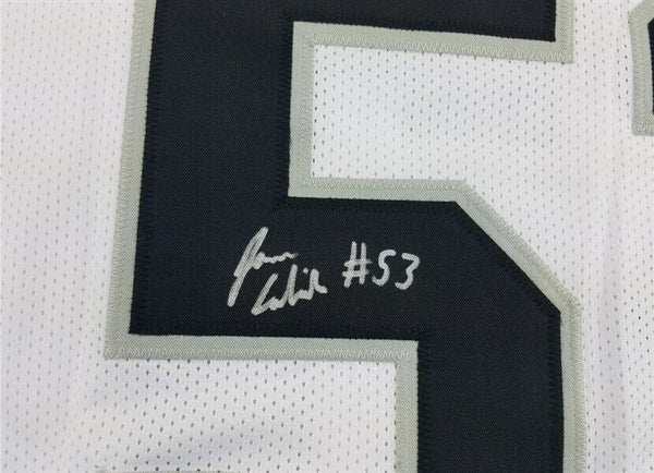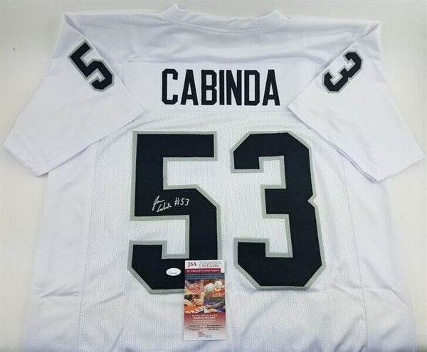 Custom on-field style jersey. Everything is sewn on, size XL. Hand-signed in silver felt-tip pen by Jason Cabinda . The lot / autograph(s) includes an official James Spence Authentication (JSA) hologram and matching COA for authenticity purposes. The signing of this item was witnessed by JSA.Authentication: JSA COA