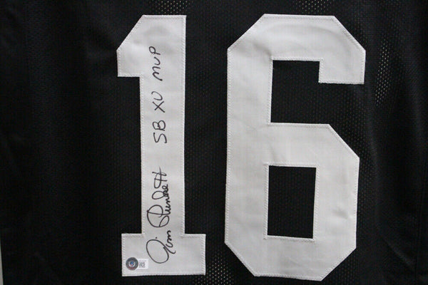 Jim Plunkett Autographed/Signed Pro Style Black XL Jersey SB MVP Beckett 39324 The number in the listing title is just an inventory sku for our records and is not the authentication number. The item pictured is a stock photo unless otherwise noted. This is a custom pro style black XL jersey with sewn on name and numbers that was personally autographed by Jim Plunkett with SB MVP inscription. Includes a certificate of authenticity from Beckett Authentication Services (BAS) and Denver Autographs.