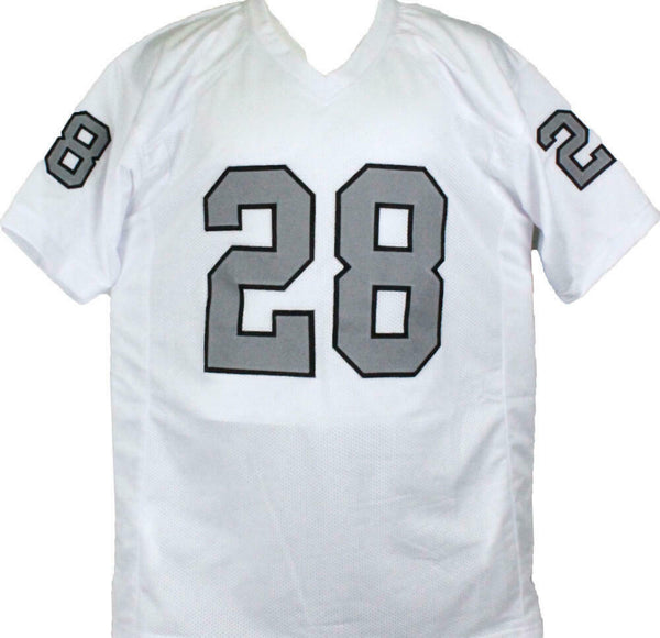 Josh Jacobs Autographed White Color Rush Pro Style Jersey-Beckett W Hologram *Silver THIS IS NOT AN NFL JERSEY. THIS HAS NO TAGS, NO LOGOS, NO EMBLEMS. This is a hand autograph of Josh Jacobs of the Las Vegas Raiders on a Custom Made (non name brand) Authentic Style Jersey with stitched letters and numbers. This item has a Beckett Witnessed Authentication, which comes with a Beckett numbered hologram and a generic Certificate of Authenticity. You can view this item on the Beckett Authentication website, it shows when and where the item was signed. It was signed either at a public autograph appearance or a private signing. This is a stock photo of the item. Although you may not receive this exact item, the item you receive is virtually identical and brand new in great shape. Jersey size is XL.