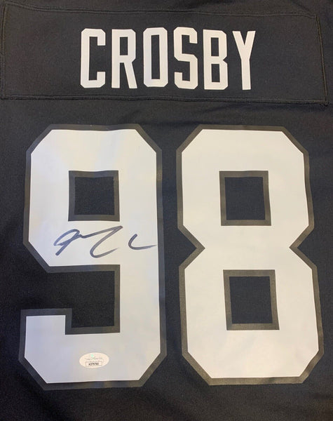 Maxx Crosby has autographed this official Las Vegas jersey size XL game jersey with screen printed #. Autograph is authenticated by James Spence Authentication (JSA). Comes with their certificate of authenticity and hologram on item which is verified on their site. JSA is one of the most recognized authenticators for sports autographs.