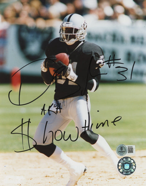 This Autographed 8x10 Photo with the inscription of "AKA $howtime, #31" has been Personally Signed by Phillip Buchanon of the Oakland Raiders. This item is 100% Authentic to include a hologram by Beckett Authentication Services. This item will come with an affixed Beckett Authentication Services (BAS) authentication sticker, which includes a scannable QR code to verify authenticity. Please note that Beckett no longer provides serial-numbered COA cards, and the attached BAS sticker will serve as the complete authentication for this item. The authenticity can be verified on Beckett Authentication Services website.
