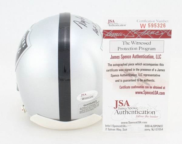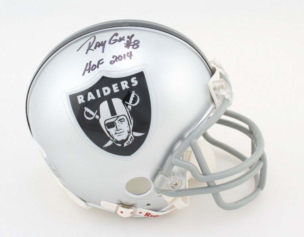Riddell Raiders mini helmet. Hand-signed in black felt-tip pen by Ray Guy. The lot / autograph(s) includes an official James Spence Authentication (JSA) hologram and matching COA for authenticity purposes. The signing of this item was witnessed by JSA.Authentication: JSA COA