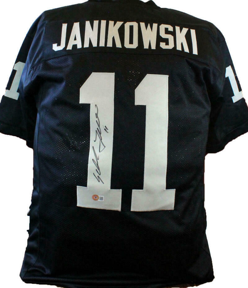 Sebastian Janikowski Autographed Black Pro Style Jersey- Beckett W Hologram *L1 THIS IS NOT AN NFL JERSEY. THIS HAS NO TAGS, NO LOGOS, NO EMBLEMS. This is a Hand Autographed Jersey of Sebastian Janikowski. This is Custom Made (Non Name Brand) Authentic Style (Stitched Letters and Numbers) Jersey. This item has a Beckett Witnessed Authentication, which comes with a numbered hologram and a generic Certificate of Authenticity. You can view this item on the Beckett website. It was signed either at a public autograph appearance or a Private Signing. This is a stock photo of the item. Although you may not receive this exact item, the item you receive is virtually identical and brand new in great shape. Jersey size is XL.