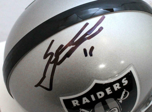Sebastian Janikowski Autographed Oakland Raiders Mini Helmet- Beckett W hologram This is a Hand Autographed Helmet of Sebastian Janikowski of The Oakland Raiders. This is a Riddell Football Mini Helmet. This item has a Beckett Witness Authentication, which Comes with a Beckett #'ed Sticker hologram and a generic Beckett COA. You can view this item on the Beckett website and it shows when and where the item was signed. It was signed either at a public autograph appearance or a Private Signing. This is a stock photo of the item. Although you may not receive this exact item, the item you receive is virtually identical and brand new in great shape.