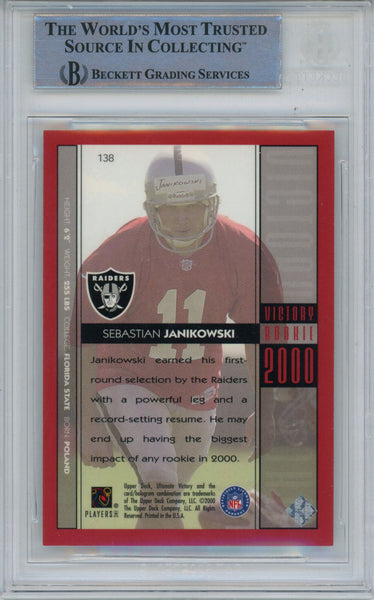 Sebastian Janikowski Signed 2000 Upper Deck Ultimate Victory #138 Card BAS 42915 The number in the listing title is just an inventory sku for our records and is not the authentication number. This is the exact item that you will receive so please see pictures for condition. This is a trading card that was personally autographed by Sebastian Janikowski. This has been professionally slabbed by Beckett Authentication Services (BAS) and includes a certificate of authenticity from Denver Autographs.