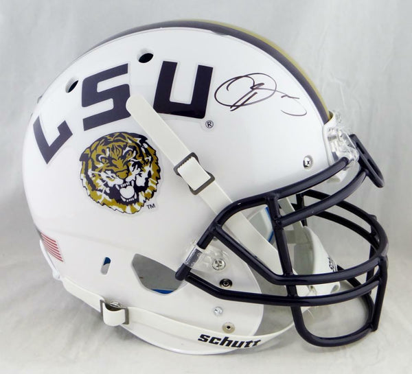 Odell Beckham Autographed LSU Tigers F/S White Authentic Schutt Helmet- JSA W Auth This is a Hand Autograph of Odell Beckham Jr of the Louisiana State University Tigers on a Schutt Football Authentic Full Size Helmet. This item has a James Spence Witness Authentication, which comes with a JSA numbered sticker and a matching JSA certificate of authenticity. You can view this item on the SpenceLOA website. It was signed either at a public autograph appearance or a private signing. This is a stock photo of the item. Although you may not receive this exact item, the item you receive is virtually identical and brand new in great shape.