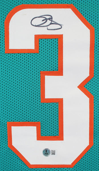 This Autographed Teal Pro Style Jersey has been Personally Signed by Odell Beckham Jr. of the Miami Dolphins. This item is 100% Authentic to include a hologram by Beckett Authentication Services. This item will come with an affixed Beckett Authentication Services (BAS) authentication sticker, which includes a scannable QR code to verify authenticity. Please note that Beckett no longer provides serial-numbered COA cards, and the attached BAS sticker will serve as the complete authentication for this item. This is a BAS Witnessed Protection Program item which means a Beckett Authentication Service representative was present when this item was being signed. We conducted an autograph signing with Odell Beckham Jr. where multiples of the same item were signed. While the photographs are representative of this item, the size, placement and strength of the signature may vary. Each item is hand signed, therefore, each autograph is unique. This item can be verified through BAS Witnessed. This is a X-Large sized, non-branded, custom-stitched Jersey.