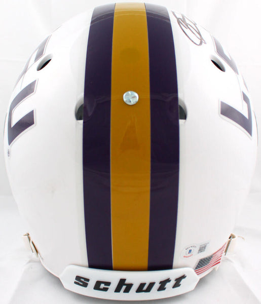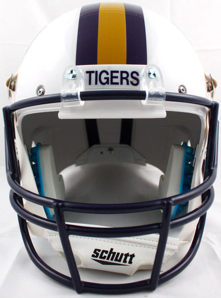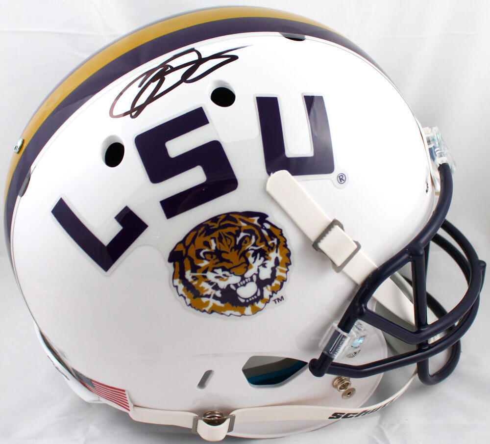 Odell Beckham Jr. Autographed LSU Tigers White F/S Schutt Helmet-Beckett W Hologram *Black This is a hand autographed helmet of Odell Beckham Jr. of the Louisiana State University Tigers. This is a Schutt Football Replica Helmet. This item has a Beckett Witness Authentication, which comes with a Beckett numbered sticker hologram and a QR code for verification. You can view this item on the Beckett website and it shows when and where the item was signed. It was signed either at a public autograph appearance or a private signing. This is a stock photo of the item. Although you may not receive this exact item, the item you receive is virtually identical and brand new in great shape.