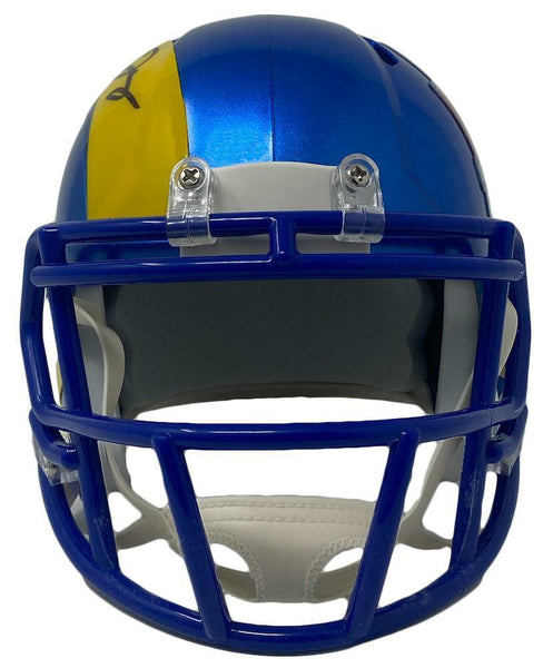 This mini speed rams champ logo helmet has been personally hand-signed by odell beckham jr. this helmet also includes the official super bowl lvi logo on the non-signature side of the helmet. it is officially licensed by the national football league and comes with an individually numbered, tamper-evident hologram from fanatics authentic. to ensure authenticity, the hologram can be reviewed online. this process helps to ensure that the product purchased is authentic and eliminates any possibility of duplication or fraud.the autograph includes an official fanatics hologram and matching coa for authenticity purposes.comes with a tamper-evident hologram from fanatics authenticatedofficially licensed by the nfl money back guarantee! if for any reason you are not completely satisfied with the quality or authenticity of your purchase, we will gladly give you a full refund or exchange, whichever you prefer up to 30 days after purchase. please feel free to e-mail us with any questions. good luck bidding!!! authenticator pre-certified authenticator: fanatics authenticated history of item: odell beckham jr. has signed this item in the presence of a representative from fanatics. describe how you came to possess this item: super sports center is a fully authorized dealer for upper deck authenticated as well as mounted memories and steiner sports. other information about you and / or the item: super sports center strives to deliver the most authentic in sports memorabilia from trusted companies like mounted memories, steiner sports and upper deck authenticated. if it exists, we can find it for you!
