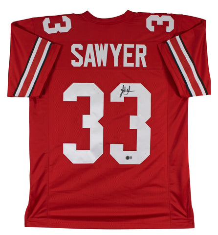 JACK SAWYER SIGNED OHIO STATE BUCKEYES #33 RED JERSEY W/ 2024 NATIONAL CHAMPS