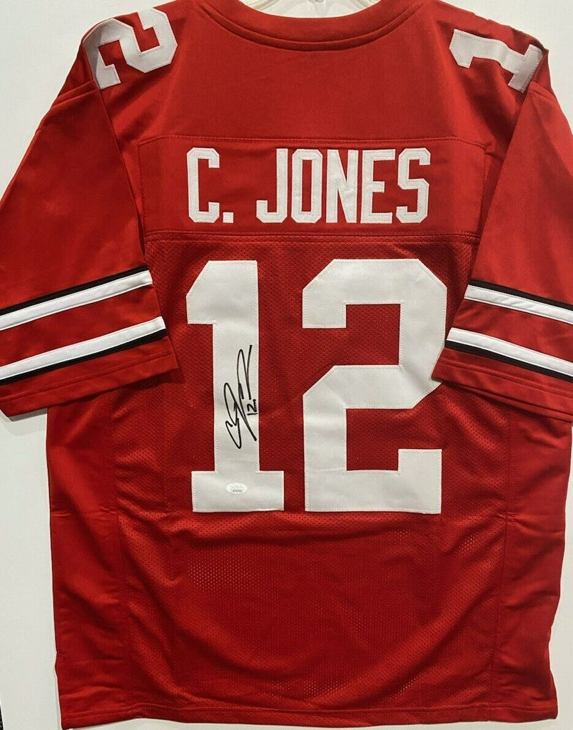 Custom on-field style jersey. Everything is sewn on, size XL. Hand-signed in black felt-tip pen by Cardale Jones. The autograph includes an official James Spence Authentication (JSA) hologram and matching COA for authenticity purposes. Authentication: JSA COA