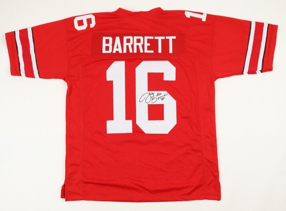 Custom on-field style jersey. Everything is sewn on, size XL. Hand-signed by JT Barrett.The lot / autograph(s) includes an official James Spence Authentication (JSA) hologram for authenticity purposes. The signing of this item was witnessed by JSA.Authentication: JSA Hologram