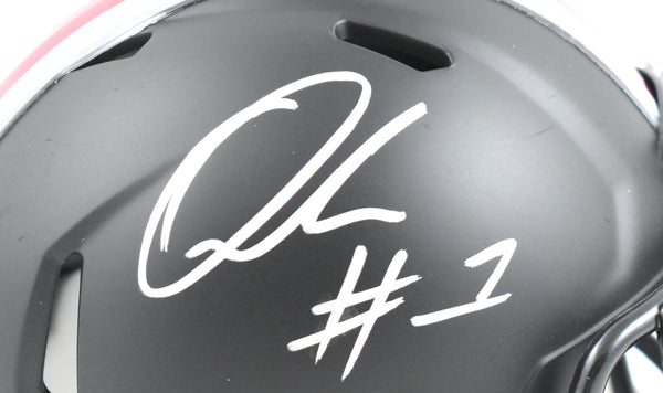 This is a hand autograph of Quinshon Judkins of the Ohio State Buckeyes on a Riddell Football Black Speed Mini Helmet. This item has a Beckett Witnessed Authentication, which comes with a numbered hologram and a QR code for verification. You can view this item on the Beckett Authentication website and it shows when and where the item was signed. It was signed either at a public autograph appearance or a private signing. This is a stock photo of the item. Although you may not receive this exact item, the item you receive is virtually identical and brand new in great shape. This is a hand autograph of Quinshon Judkins of the Ohio State Buckeyes on a Riddell Football Black Speed Mini Helmet. This item has a Beckett Witnessed Authentication, which comes with a numbered hologram and a QR code for verification. You can view this item on the Beckett Authentication website and it shows when and where the item was signed. It was signed either at a public autograph appearance or a private signing. This is a stock photo of the item. Although you may not receive this exact item, the item you receive is virtually identical and brand new in great shape.