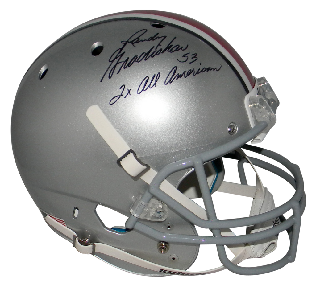 Randy Gradishar, former All-American linebacker for the Buckeyes, has hand signed this Ohio State Schutt full-size replica helmet at a private signing. He included the inscription "2x All-American". This item comes with a certificate of authenticity (COA) from JSA - James Spence Authentication and was signed in the presence of one of their representatives. You will receive a serial-numbered COA along with a matching serial-numbered sticker on the helmet. The authenticity can be verified online by entering the serial number.Item pictured may not be the exact item you will receive. It will be similar quality, and we guarantee your satisfaction.