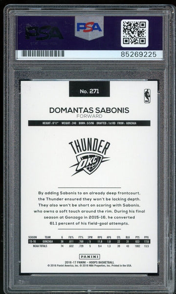 2016 Panini NBA Hoops #271 Domantas Sabonis RC On Card PSA/DNA Auto GEM MINT 10