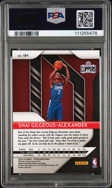 This Autographed 2018 Panini Prizm #184 Rookie Card has been Personally Signed by Shai Gilgeous-Alexander of the Oklahoma City Thunder. This item is 100% Authentic, it comes slabbed and authenticated by PSA/DNA. The authenticity can be verified on Professional Sports Authenticator website.