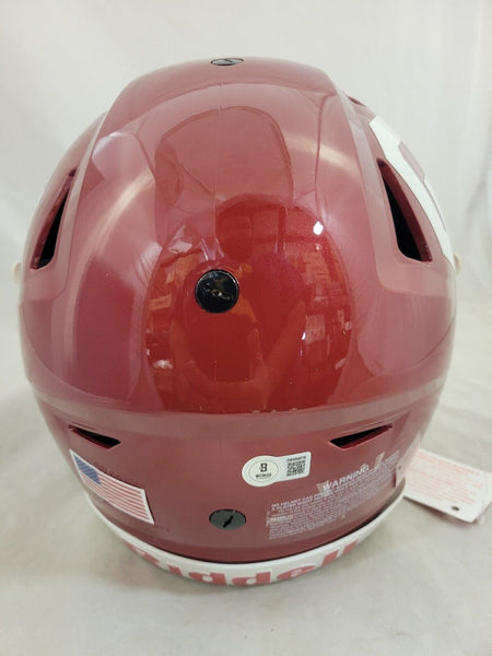 BAKER MAYFIELD AUTOGRAPHED OKLAHOMA SOONERS FULL SIZE SPEEDFLEX AUTHENTIC HELMET"HT 17" INSCRIPTIONBECKETT WITNESSED QR COATHIS MEANS THE HELMET WAS SIGNED WITH A BECKETT REPRESENTATIVE PRESENT SO YOU CAN BE 100% CERTAIN ITS THE REAL THING.