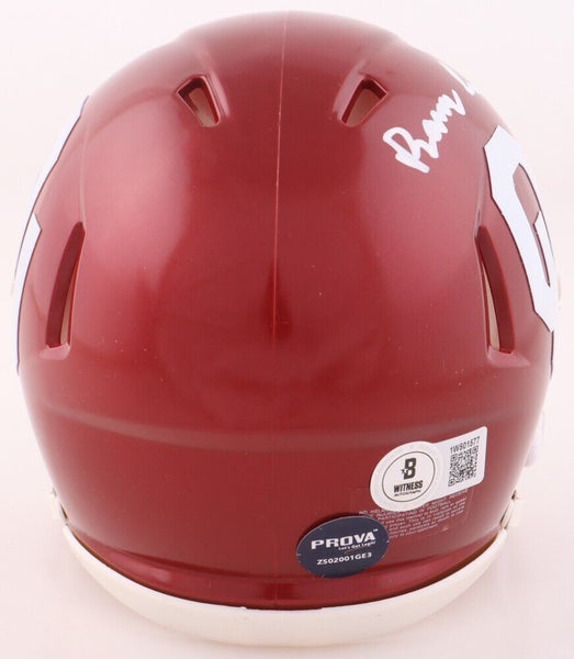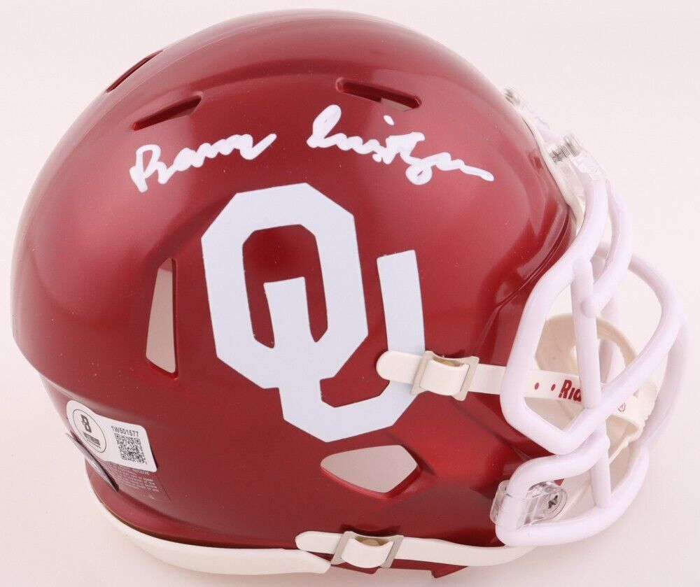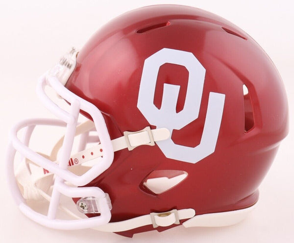 Riddell Oklahoma Sooners Speed mini helmet. Hand-signed by Barry Switzer.The autograph includes an official Beckett Authentication Services serially numbered hologram as well as an official Prova hologram for authenticity purposes. The signing of this item was witnessed by Beckett.Authentication: Beckett Hologram & Prova Hologram