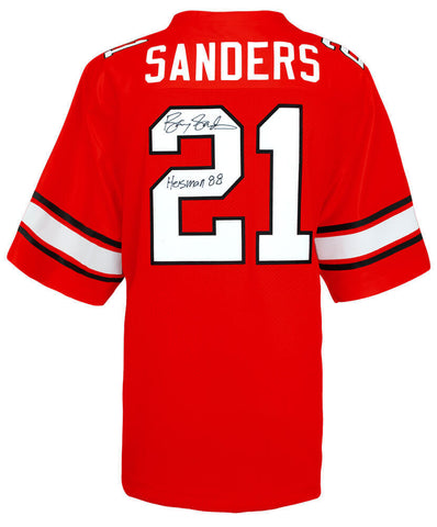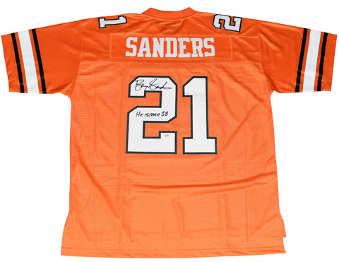 BARRY SANDERS SIGNED OKLAHOMA STATE COWBOYS #21 ORANGE JERSEY W/ HEISMAN 88