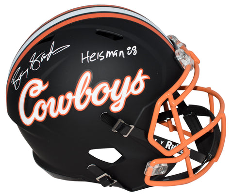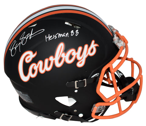 BARRY SANDERS SIGNED OKLAHOMA STATE COWBOYS AUTHENTIC SPEED HELMET + HEISMAN 88