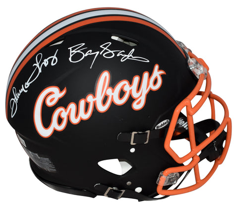 Barry Sanders & Thurman Thomas Signed Ok State Black Riddell FS Rep Helmet w/INS