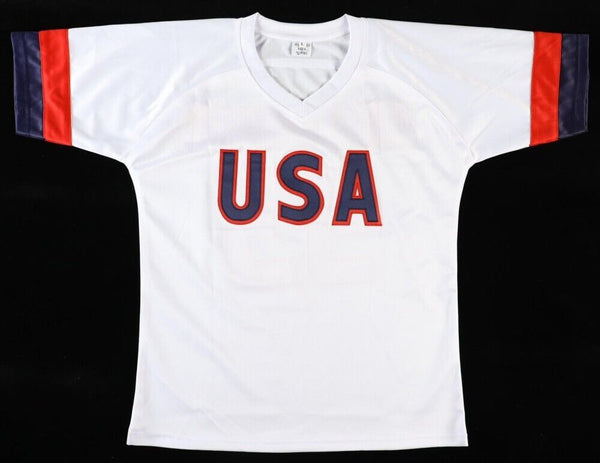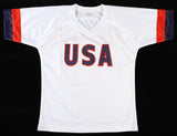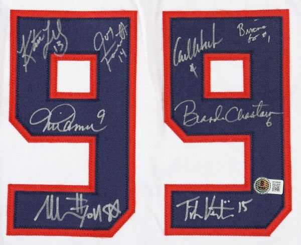 1999 USA Women's Soccer Team Jersey Signed by (8) (Beckett)Custom on-field style jersey with everything sewn on, size Large. Hand-signed by (8) members of the 1999 Summer Olympic Women's soccer team with Mia Hamm, Brandi Chastain, Joy Fawcett, Briana Scurry, Carla Overbeck, Michelle Akers, Kristine Lilly, & Tisha Venturini.The autograph includes an official Beckett Authentication Services serially numbered hologram and QR Code Card for authenticity purposes. The signing of this item was witnessed by Beckett.Authentication: Beckett Hologram with QR Code CardShop our ebay store / Confines Collectibles for thousands of different autographed jerseys