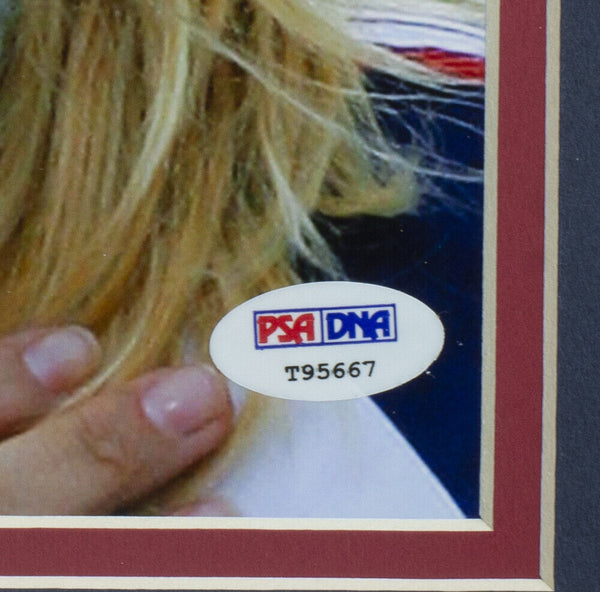 Featured is a Jennie Finch signed framed 8x10 USA softball photo. This photo was hand signed by Jennie Finch and has been authenticated by PSA/DNA authentication services. Included with the photo is a PSA/DNA hologram and certificate of authentication. Brand new professional framing featuring double matting and engraved nameplate. The frame measures approximately 11x14 in total size, and it is ready for display. This item would make a great addition to any sports memorabilia collection.. SPECIFICATIONS Autographed By: Jennie Finch Team: USA Sport: Football Authentication: Professional Sports Authenticator (PSA)