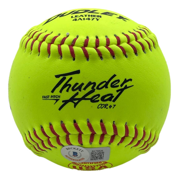 Featured is a Jennie Finch signed Jennie Finch World Series softball, inscribed "USA". This ball has been hand signed by Finch and comes with the Beckett hologram and certificate of authenticity. This ball would make a great addition to any sports memorabilia collection!. SPECIFICATIONS Autographed By: Jennie Finch Team: USA Sport: Baseball Authentication: Beckett Grading Services