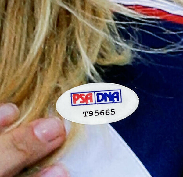 Featured is a Jennie Finch signed USA softball 8x10 photo in which she added the "USA" inscription. This photo was hand signed by Jennie Finch and authenticated by PSA/DNA authentication services. Included with the photo is a PSA/DNA hologram. This item would make a great addition to any sports memorabilia collection... SPECIFICATIONS Autographed By: Jennie Finch Team: Sport: Baseball Authentication: Professional Sports Authenticator (PSA)