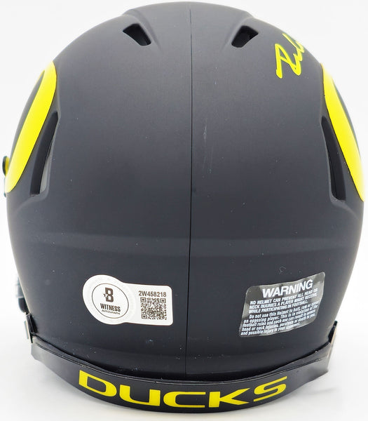This is an Oregon Ducks Black Speed Mini Helmet that has been hand signed by Dillon Gabriel. This item has been witnessed and certified authentic by Beckett Authentication (BAS) and comes with their tamper-proof witness hologram.