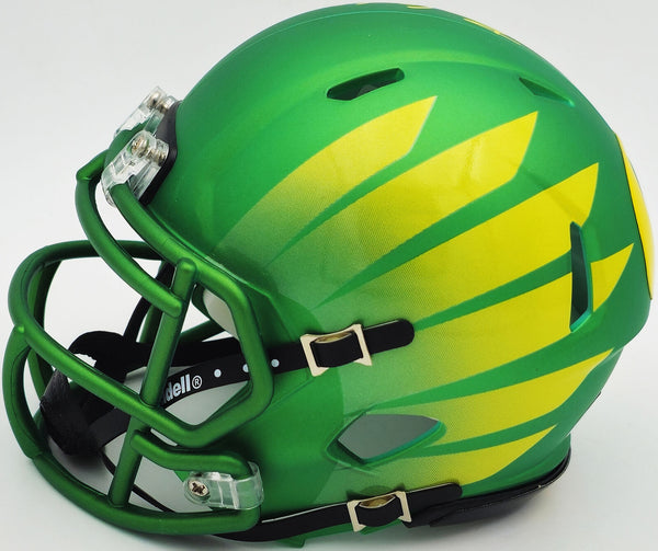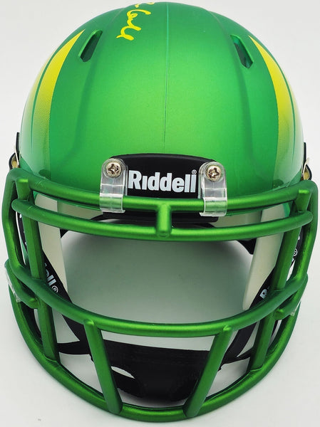 This is an Oregon Ducks Green Speed Mini Helmet that has been hand signed by Dillon Gabriel. This item has been witnessed and certified authentic by Beckett Authentication (BAS) and comes with their tamper-proof witness hologram.