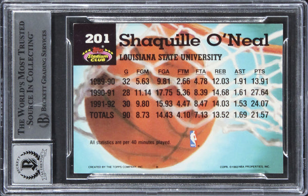 Magic Shaquille O'Neal Signed 1992 Stadium Club #201 RC Card Auto 10! BAS Slab 2