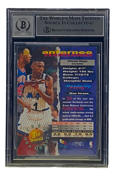 Penny Hardaway Signed Slabbed Magic 1993-94 Stadium Club #308 BAS Grade 10