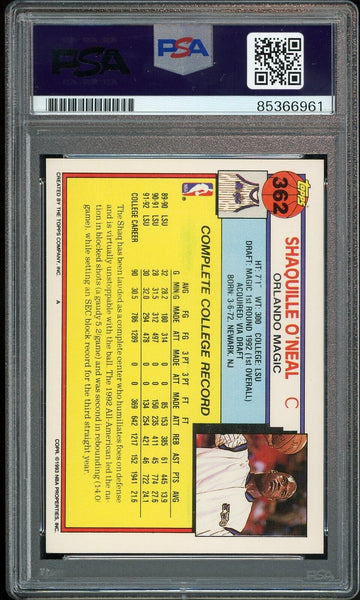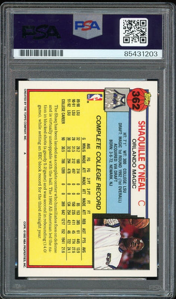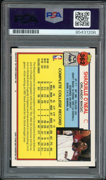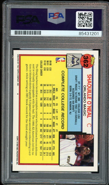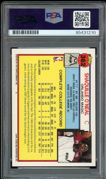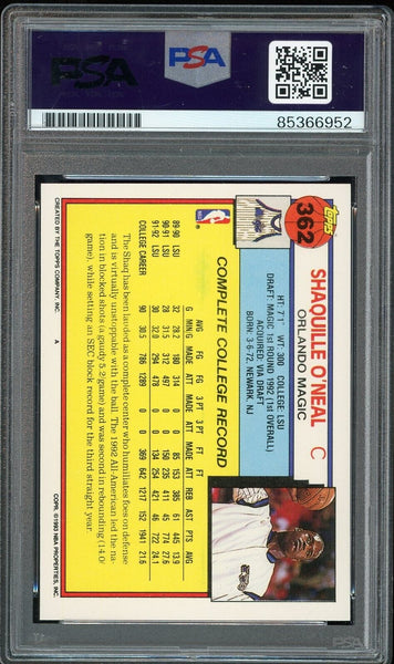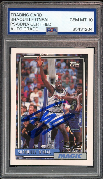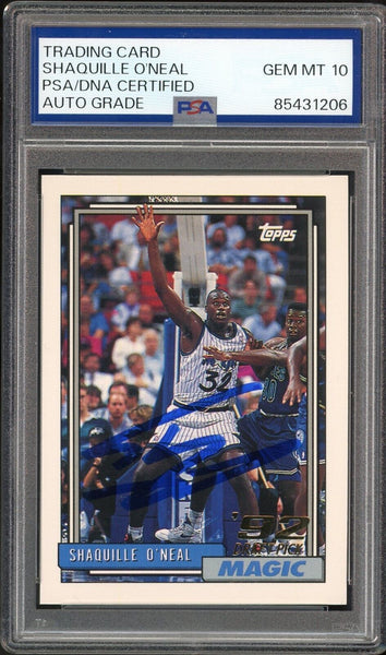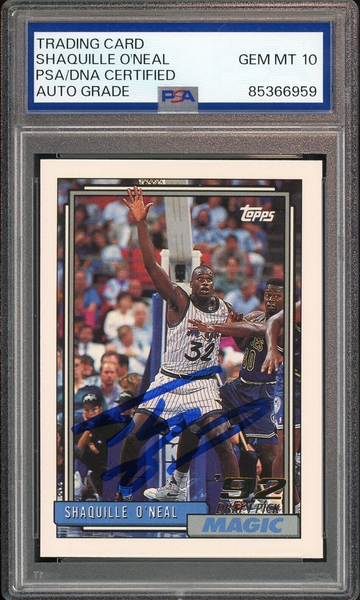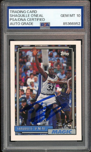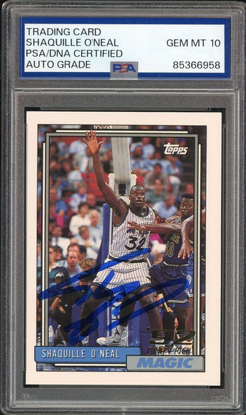 Shaquille O'Neal PSA 10 AUTO Rookie 1992 Topps #362 RC On Card GEM MINT AUTO