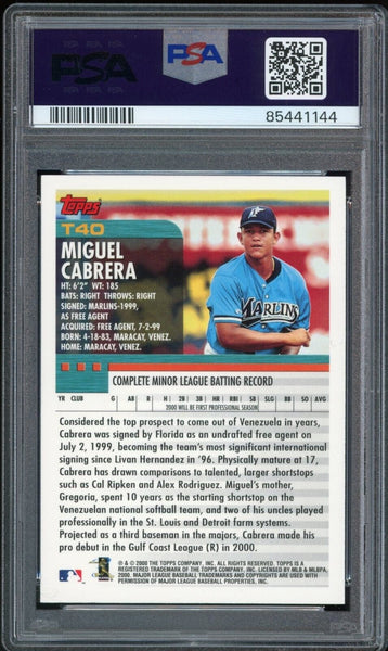 2000 Topps Traded T40 Miguel Cabrera RC Marlins On Card PSA/DNA 9/10 Auto MINT