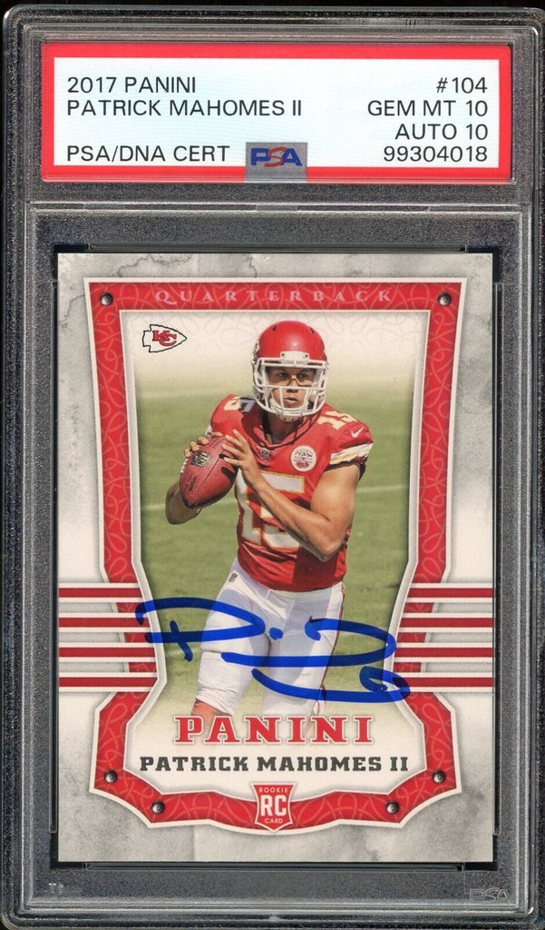 2017 Panini #104 Patrick Mahomes RC Rookie On Card PSA 10/10 Auto GEM MINT