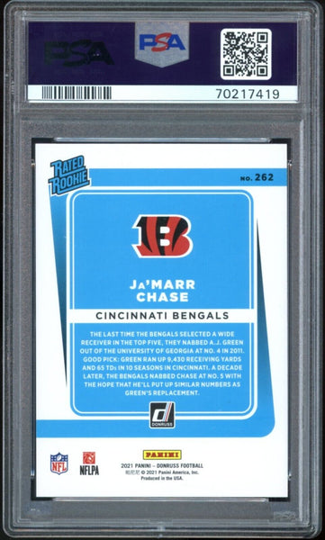 2021 Donruss Rated Rookie #262 Ja'Marr Chase RC On Card PSA 10/10 Auto GEM MINT