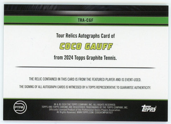 2024 Topps Graphite Tennis Coco Gauff Auto Tour Relic Refractor #TRA-CGF