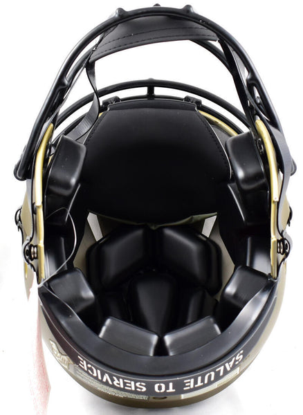 Adrian Peterson Autographed Minnesota Vikings F/S Salute to Service Speed Authentic Helmet-Beckett W Hologram *Yellow This is a Hand Autograph of Adrian Peterson of the Minnesota Vikings on a Riddell Football Salute to Service Full Size Speed Authentic Helmet. This item has a Beckett Witness Authentication, which comes with a Beckett #'ed hologram and a QR code for verification . You can view this item on the Beckett Authentication website. It was signed either at a public autograph appearance or a Private Signing. This is a stock photo of the item. Although you may not receive this exact item, the item you receive is virtually identical and brand new in great shape.
