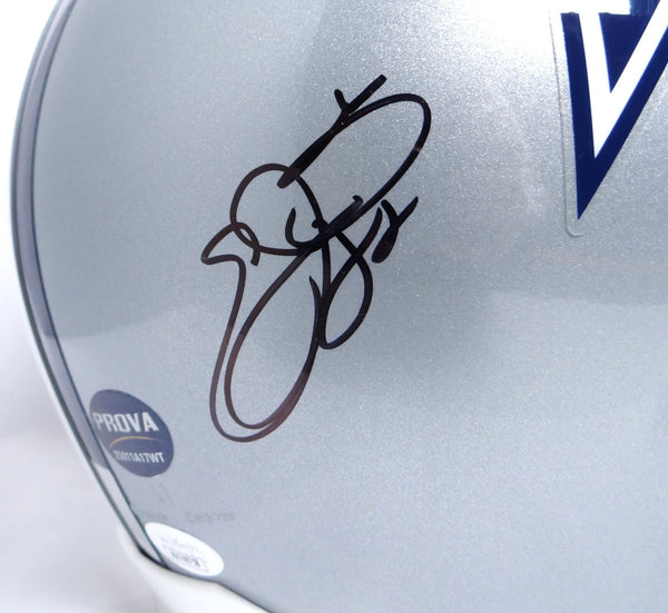 These are the Hand Autographs of Troy Aikman, Emmitt Smith, and Michael Irvin of the Dallas Cowboys on a Riddell Football Replica Full Size Helmet. This item has a JSA and Prova Witness Authentication, which each comes with a numbered sticker and a matching Certificate of Authenticity. You can view this item on the Spence LOA and Prova websites, it shows when and where the item was signed. It was signed either at a public autograph appearance or a private signing. This is the exact item that you will be receiving. Please see pictures for further details. These are the Hand Autographs of Troy Aikman, Emmitt Smith, and Michael Irvin of the Dallas Cowboys on a Riddell Football Replica Full Size Helmet. This item has a JSA and Prova Witness Authentication, which each comes with a numbered sticker and a matching Certificate of Authenticity. You can view this item on the Spence LOA and Prova websites, it shows when and where the item was signed. It was signed either at a public autograph appearance or a private signing. This is the exact item that you will be receiving. Please see pictures for further details.