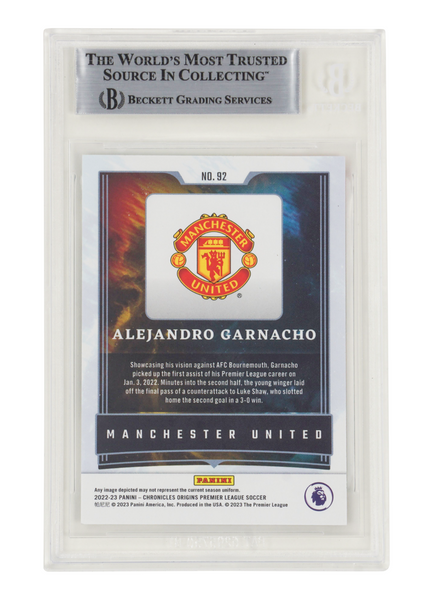 This is a Alejandro Garnacho Signed 2022-23 Panini Chronicles Origins /99 - BGS Authentic. THE ITEM IN THE PICTURE IS A STOCK IMAGE. YOU WILL RECEIVE AN IDENTICAL ITEM OF EQUAL QUALITY. ALL JERSEYS ARE SIZE LARGE. Every item of signed memorabilia we sell is official and of the highest quality. We pride ourselves on providing sports fans with the most exclusive signed memorabilia on the market. We are an industry leading signed memorabilia company who can guarantee 100% authenticity on every signature we sell. The item you receive will be identical to the one you are seeing in the stock pictures. This includes the item, the authentication company, signature color and signature placement. We take pride in ensuring the authenticity of all our items. With unwavering commitment, we guarantee that every signature is 100% authentic. Every item of signed memorabilia comes with a scannable barcode which takes you to the certificate of authenticity on the company's website. These industry leading authentication companies include Beckett Authentication Services, James Spencer Authentication Services and Professional Sports Authentication Services.