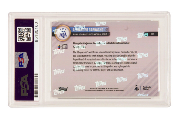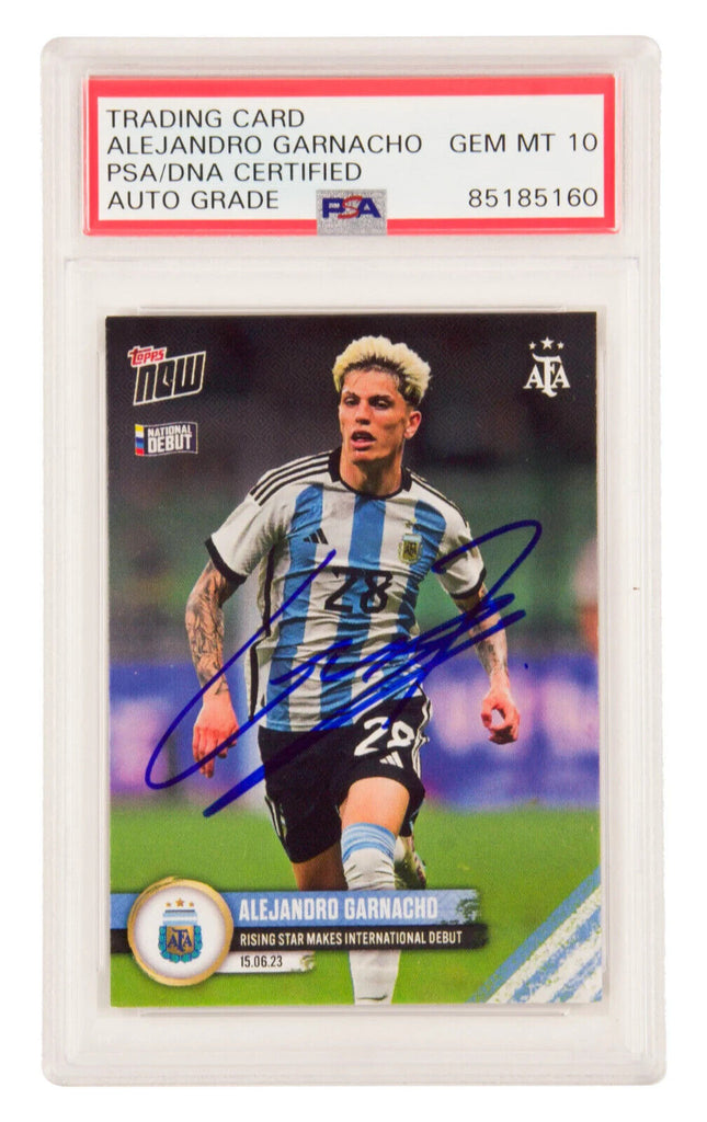 This is a Alejandro Garnacho Signed 2022-23 Topps Now Argentina Debut Rookie Card - PSA 10. THE ITEM IN THE PICTURE IS A STOCK IMAGE. YOU WILL RECEIVE AN IDENTICAL ITEM OF EQUAL QUALITY. ALL JERSEYS ARE SIZE LARGE. Every item of signed memorabilia we sell is official and of the highest quality. We pride ourselves on providing sports fans with the most exclusive signed memorabilia on the market. We are an industry leading signed memorabilia company who can guarantee 100% authenticity on every signature we sell. The item you receive will be identical to the one you are seeing in the stock pictures. This includes the item, the authentication company, signature color and signature placement. We take pride in ensuring the authenticity of all our items. With unwavering commitment, we guarantee that every signature is 100% authentic. Every item of signed memorabilia comes with a scannable barcode which takes you to the certificate of authenticity on the company's website. These industry leading authentication companies include Beckett Authentication Services, James Spencer Authentication Services and Professional Sports Authentication Services.