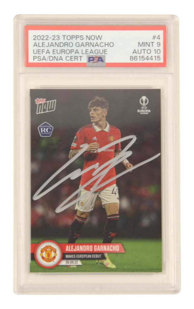This is a Alejandro Garnacho Signed 2022 Topps Now Pro Debut Rookie Card - PSA 9 Auto 10. THE ITEM IN THE PICTURE IS A STOCK IMAGE. YOU WILL RECEIVE AN IDENTICAL ITEM OF EQUAL QUALITY. ALL JERSEYS ARE SIZE LARGE. Every item of signed memorabilia we sell is official and of the highest quality. We pride ourselves on providing sports fans with the most exclusive signed memorabilia on the market. We are an industry leading signed memorabilia company who can guarantee 100% authenticity on every signature we sell. The item you receive will be identical to the one you are seeing in the stock pictures. This includes the item, the authentication company, signature color and signature placement. We take pride in ensuring the authenticity of all our items. With unwavering commitment, we guarantee that every signature is 100% authentic. Every item of signed memorabilia comes with a scannable barcode which takes you to the certificate of authenticity on the company's website. These industry leading authentication companies include Beckett Authentication Services, James Spencer Authentication Services and Professional Sports Authentication Services.