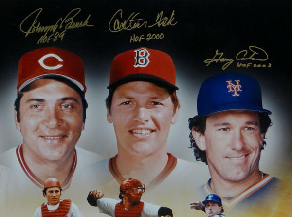 Berra, Bench, Fisk & Carter Autographed HOF Catchers 16x20 Photo Steiner Aut