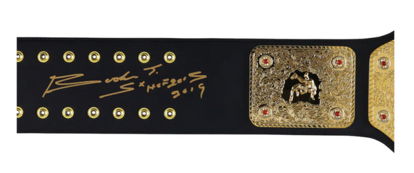 Booker T Autographed WWE Big Gold World Heavyweight Championship Replica Title Belt Fanatics Personally Autographed by Booker T Fanatics Authenticated Includes tamper-evident hologram to ensure authenticity Officially licensed This product is guaranteed authentic and includes a tamper-evident Fanatics Hologram.