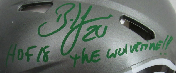 Brian Dawkins HOF Signed/Inscribed "HOF 18 The Wolverine!!!" Philadelphia Eagles Silver Full Size Flash Authentic Football Helmet. This helmet is authenticated by BAS/Beckett and includes their Tamper-proof Hologram Sticker.