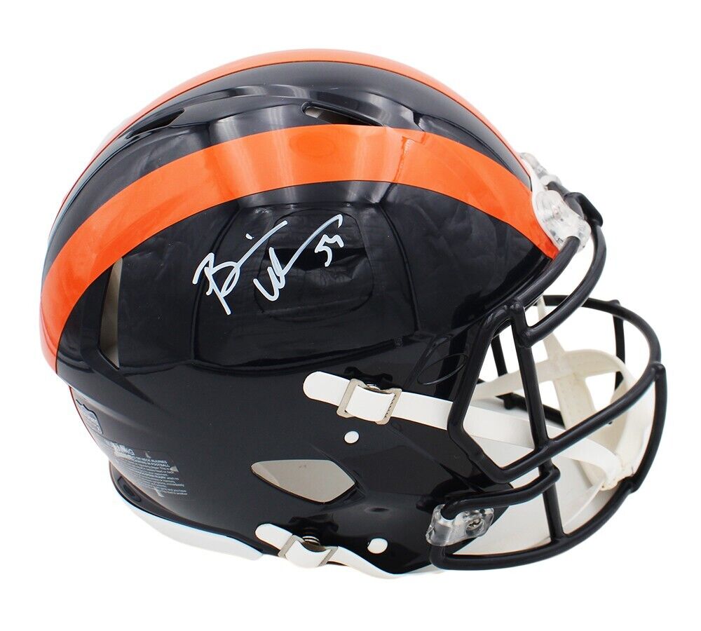 A Chicago Bears Speed Authentic Throwback Tribute NFL Helmet hand signed by Brian Urlacher. The item and signature are in excellent condition. Brian is a former American football linebacker who spent his entire 13-year career playing for the NFL Chicago Bears. He played college football for the University of New Mexico. The Bears selected Brian with the 9th overall pick in the 2000 NFL Draft. After winning the NFL Rookie of the Year Award in 2000, he was elected to eight Pro bowls, and won the NFL Defensive Player of the Year Award in 2005. AUTHENTICATION: The item has been tagged with a SmarTag powered by Prova Technology, which gives you digital access to the items authentication records, including a proof picture from the signing.