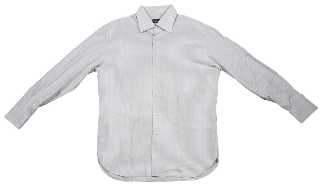 The black tag in collar reads ?Ermenegildo Zegna SU MISURA? and worn on October 6, 2013 press conference after the Denver?s game with the Dallas Cowboys in which the Broncos out-gunned the Cowboys 51-48. That game was the unbelievable record setting duel between two teams that combined for over 1,000 yards of offence and 99 total points. This shirt has been photo matched to verify that Manning wore this during his post-game press conference. This item is not autographed.