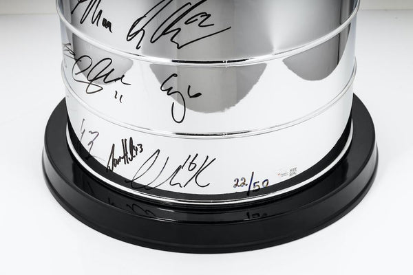 Boost your collection of Colorado Avalanche memorabilia with this Limited Edition 2022 Stanley Cup Champions 2' Replica Stanley Cup with Multiple Signatures. All the individuals who signed this eye-catching collectible helped lead the Avalanche to the most wins in a regular season in franchise history with 56 and win their first Stanley Cup in more than 20 years. By the end of the four postseason rounds that they competed in, they boasted a 16-4 record, which included sweeping their opponents in the Western Conference First Round and Finals. Their All-Star centre, Nathan MacKinnon, led all skaters with 13 goals in the playoffs, while Cale Makar won the series MVP after a phenomenal round and entire postseason. You can remember their championship forever by making this hand-signed piece of memorabilia part of your collection.You are bidding on the premium number "22" from this limited edition.This trophy is in stock and ready to ship. It is officially licensed by the National Hockey League and comes with an individually numbered, tamper-evident hologram from Fanatics Authentic. To ensure authenticity, the hologram can be reviewed online. This process helps to ensure that the product purchased is authentic and eliminates any possibility of duplication or fraud.Made in the USAPersonally Autographed by Andre Burakovsky, J.T. Compher, Pavel Francouz, Erik Johnson, Darcy Kuemper, Gabriel Landeskog, Nathan MacKinnon, Cale Makar, Mikko Rantanen, Devon Toews and moreFanatics Authentic Presented by Mounted MemoriesIncludes tamper-evident hologram to ensure authenticityOfficially licensed This product is guaranteed authentic and includes a Fanatics Certificate of Authenticity and an accompanying tamper-evident Fanatics Hologram.