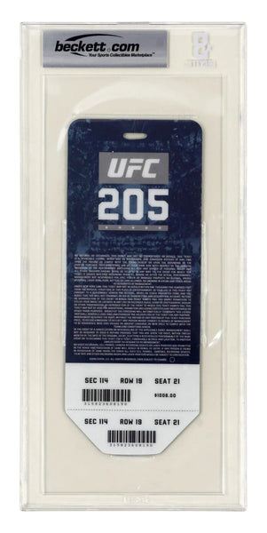 This is a Conor McGregor Signed 2016 UFC Title Fight vs Alvarez Inscribed Ticket - BGS 7. THE ITEM IN THE PICTURE IS A STOCK IMAGE. YOU WILL RECEIVE AN IDENTICAL ITEM OF EQUAL QUALITY. ALL JERSEYS ARE SIZE LARGE. Every item of signed memorabilia we sell is official and of the highest quality. We pride ourselves on providing sports fans with the most exclusive signed memorabilia on the market. We are an industry leading signed memorabilia company who can guarantee 100% authenticity on every signature we sell. The item you receive will be identical to the one you are seeing in the stock pictures. This includes the item, the authentication company, signature color and signature placement. We take pride in ensuring the authenticity of all our items. With unwavering commitment, we guarantee that every signature is 100% authentic. Every item of signed memorabilia comes with a scannable barcode which takes you to the certificate of authenticity on the company's website. These industry leading authentication companies include Beckett Authentication Services, James Spencer Authentication Services and Professional Sports Authentication Services.